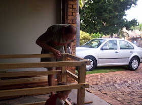 Die Le Roux's se kombuis projek het uiteindelik op dreef gekom! Die eerste raamwerk is amper klaar - die opwasbak. Dit lyk nog rof en na niks, maar is hopelik belowend!